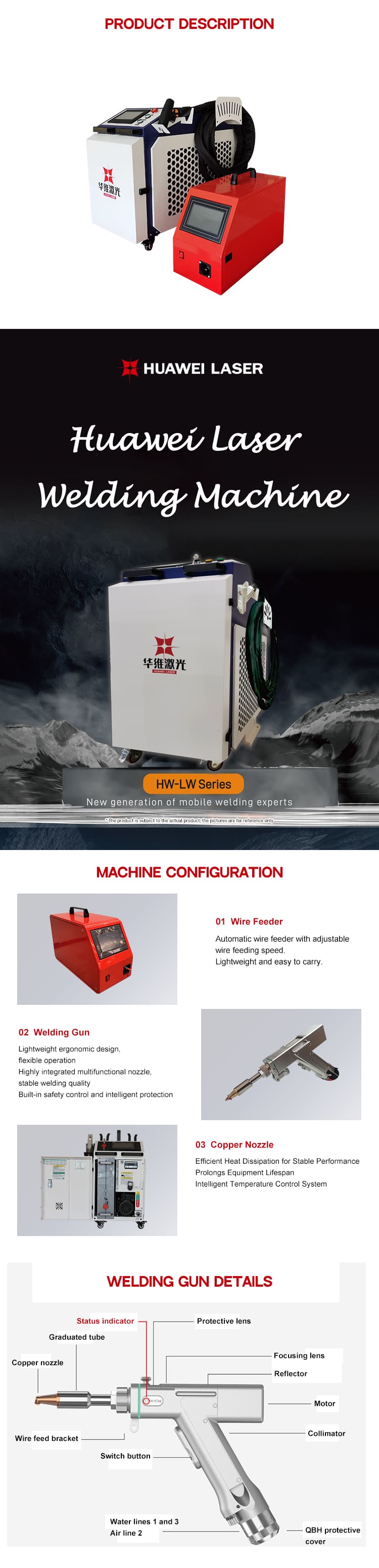 HUAWEI LASER 1200W 1500W Eskuko Laser Soldadura Makina zehatz honek erosleei irtenbide zehatza, eraginkorra eta erabilerraza eskaintzen die kalitate handiko metalezko soldadurarako. Altzairu herdoilgaitzean, karbono-altzairuan eta aluminioan lan bikaina egiteko diseinatua, jostura leunak, sartze sakona eta gutxieneko bero-distortsioa eskaintzen ditu. Eskuko pistola arinak espazio estuetan funtzionamendu malgua onartzen du, eta ezin hobea da tailerretarako, tokiko fabrikaziorako eta konponketa lanetarako. Irteera egonkorra eta mantentze-eskakizun baxuak dituenez, eguneroko errendimendu fidagarria eskaintzen du metalgintzako hainbat beharretarako.
